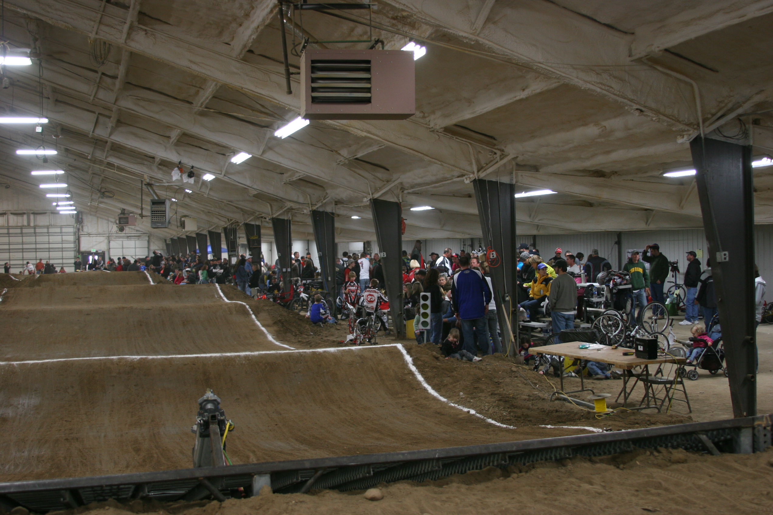 An enthusiastic group of people have orchestrated early season racing up in Greeley! Colorado Indoor BMX will be hosting three race weekends- One in early January, one in mid February, and the last one in March. The Turner Posse headed up for the first race, there was a huge turnout on both days, I’d guess 350-400 on Saturday with 32 motos (by age and level) and 250-300 on Sunday with 28 motos. Even though the turnout was less on Sunday, the racers on Sunday were the hardcore seasoned riders. After 3 qualifiers for each age group, Saturday ended up with both Conrad and Dillon making the final for their age group and both got second place podiums. On Sunday, only Lander made the final and managed to blow a tire in the first turn, he was bummed, he had a good shot at making the podium, alas he will race another day.