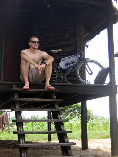I hope you enjoy these pictures. I did another bike trip to the coast for a weekend away from the mine. Four hours of bike riding each way. I figure it’s about 50 miles trip each direction. I left Tarkwa on saturday morning and returned on sunday afternoon. Highlights of the trip include the kids getting coconuts out of the trees. It was totally worth the inflated prices (and the further inflation due to lack of change) to see the kid climb up the tree and rummage around for the coconuts. Unfortunately, the kid wore a green shirt and therefore blended it quite will with the palm leaves, but if you look very carefully, you can see him way up at the top. Fortunately, he made it down from there safely. You will also see photos of the little hut on stilts that I got for the night. Beach front view, nice little bed w/ mosquito net, cost me about $15 for the night. It doesn’t get much better than that.