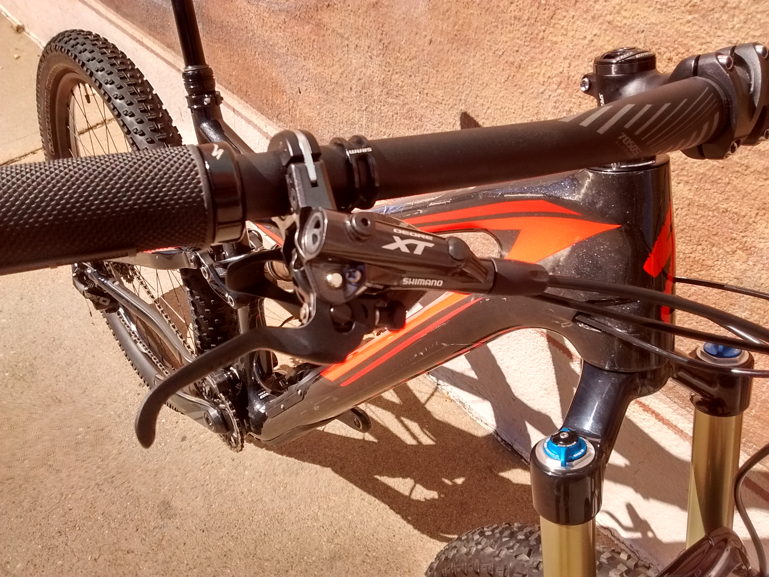 In addition to the plus size rubber, our expert level demo bike features a FACT 9m carbon fiber frame, FOX Float Factory DPS shock, FOX 34 Plus Performance Elite fork, Shimano XT brakes, 1×11 SRAM X01/X1 drivetrain, and Specialized Command Post IRcc dropper seatpost. Stop by Peak Cycles in Golden, CO to take it for a spin or check out all of the specs HERE.