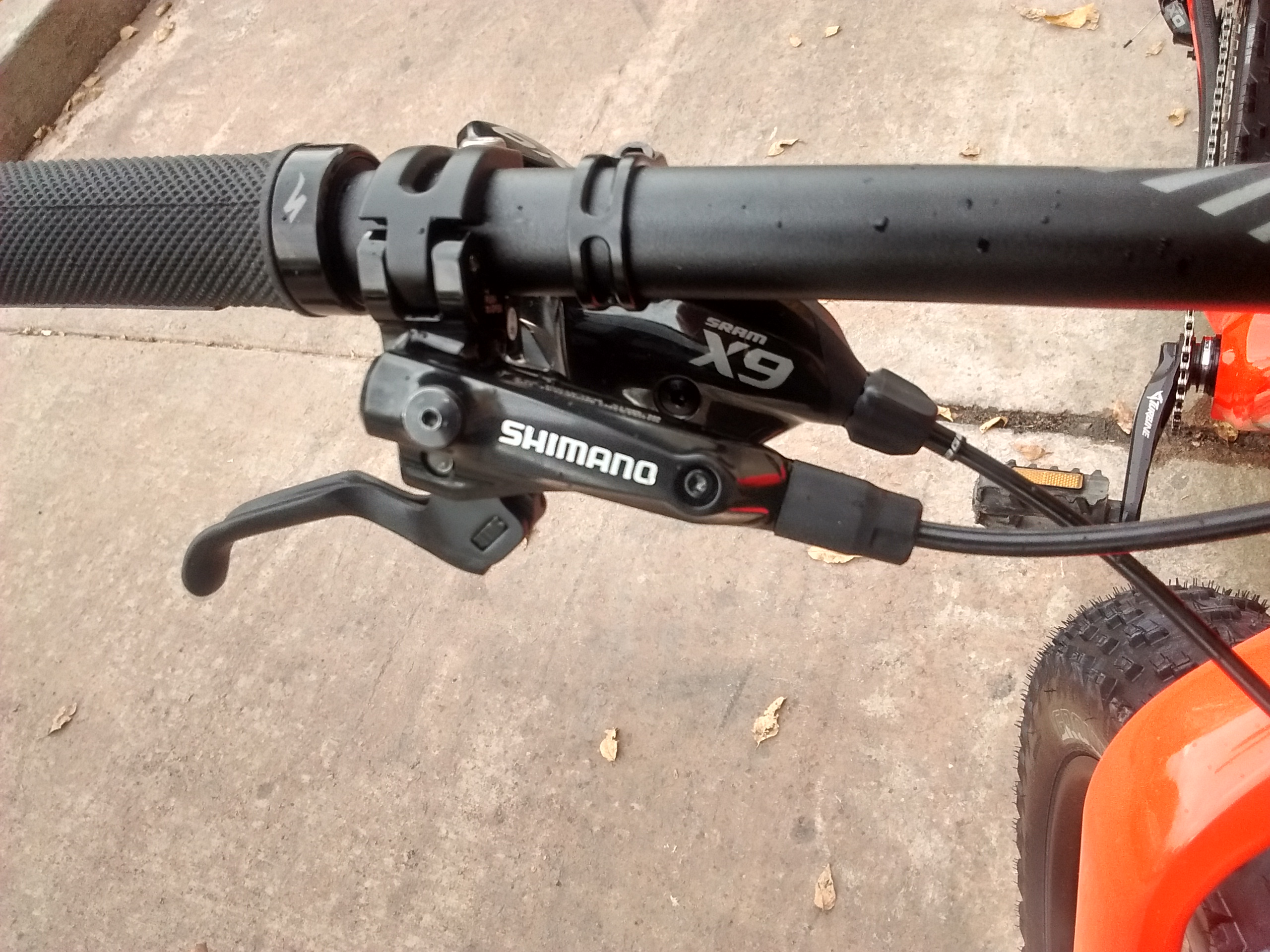 The 2016 Fatboy Comp Carbon comes equipped with Shimano Deore brakes with Ice-tech rotors. The rear derailleur is controlled by a 10-speed X9 shifter.