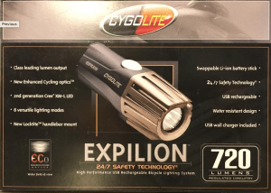 Cygolite Expilion 720 lumen light! USB rechargeable, water resistant, and 8 different light modes. Come get the perfect light for night riding season.