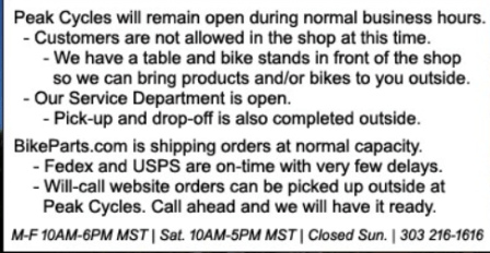 Peak Cycles – BikeParts.com IS OPEN