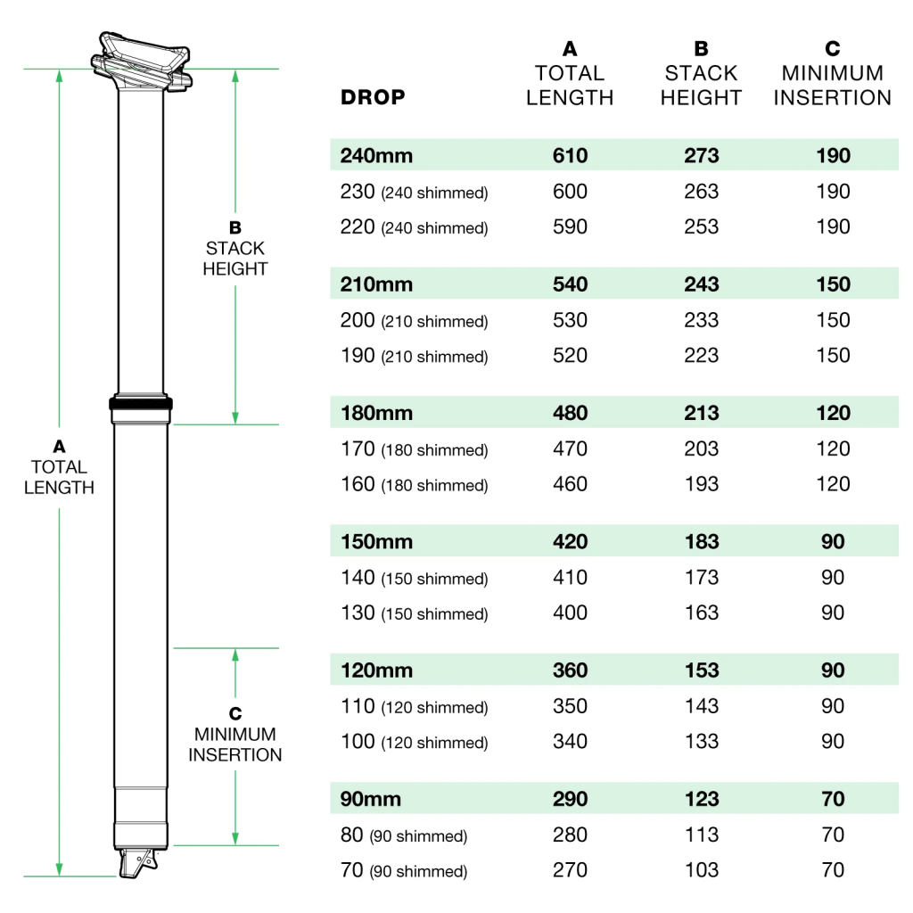 | RockShox Reverb Stealth | 100, 125, 150, 175, 200 |