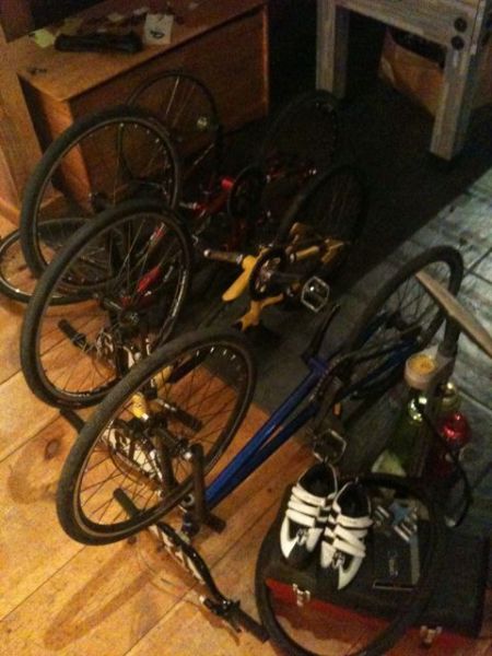 Later that night, in the hotel Derek pulled another great teammate and helped fix (I should say he did almost all of it) to my bike. Straightening out the flat spot on my wheel with a small screw driver and pliers that you would expect from a boyscout like Derek.